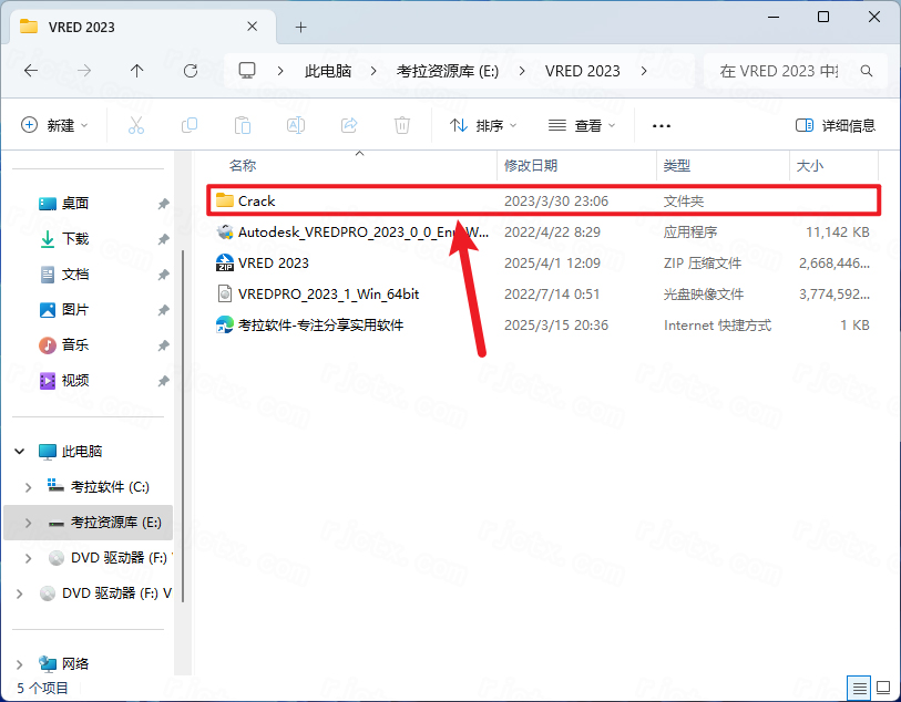 9.回到VRED 2023文件夹,找到【Crack】文件夹,右键【打开】它