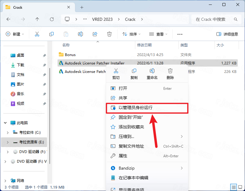 10.找到【Autodesk License Patcher Installer】应用程序,右键选择【以管理员身份运行】它