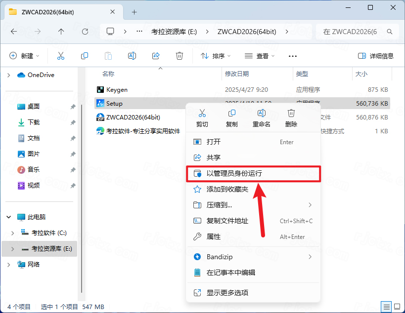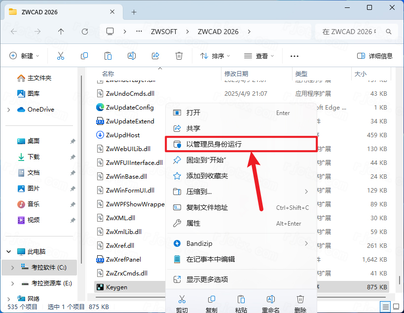 10.鼠标右击粘贴后的【Keygen】选择【以管理员身份运行】
