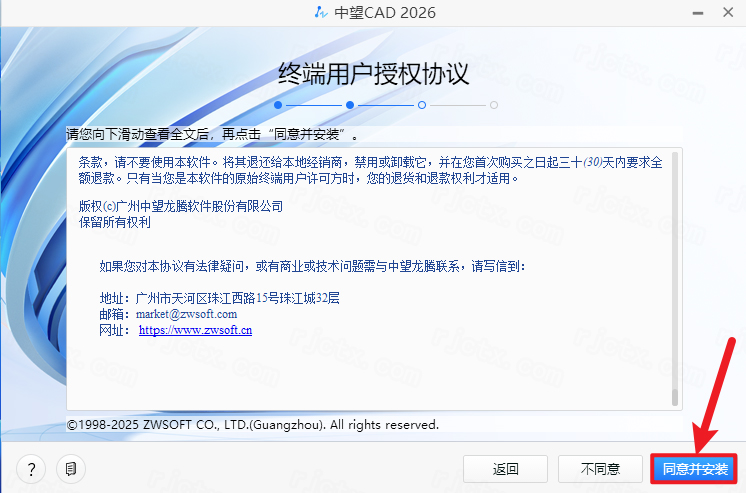 4.拖动“下拉条”到末端,点击【同意并安装】
