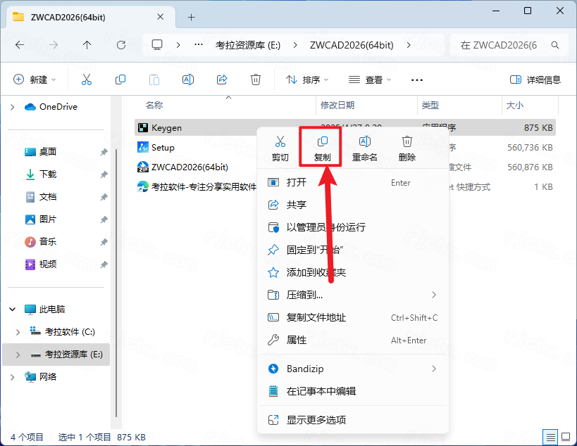 7.鼠标右击解压出来的【keygen】选择【复制】