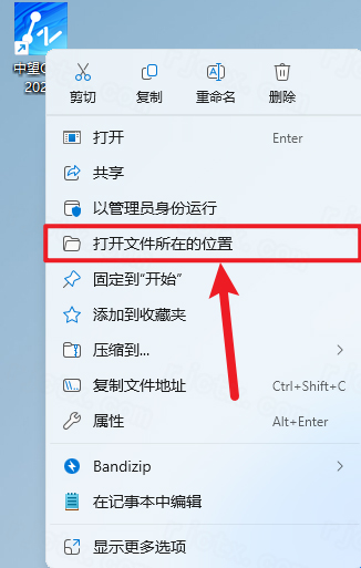 8.鼠标右击桌面【中望CAD2026】选择【打开文件所在的位置】