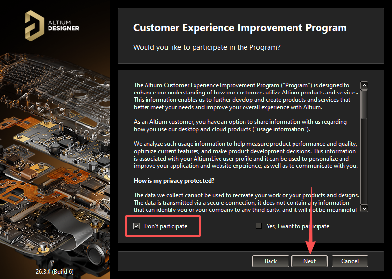 6、选择【Don't Participate】,点击【Next】。