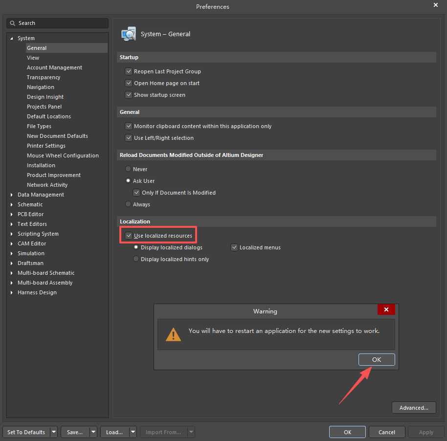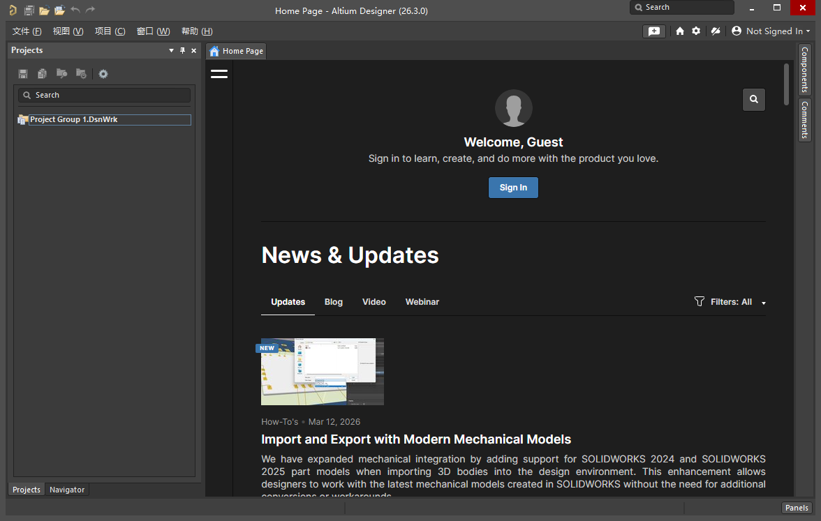 19、重启软件,此时Altium Designer 26就是中文界面,可以放心使用。