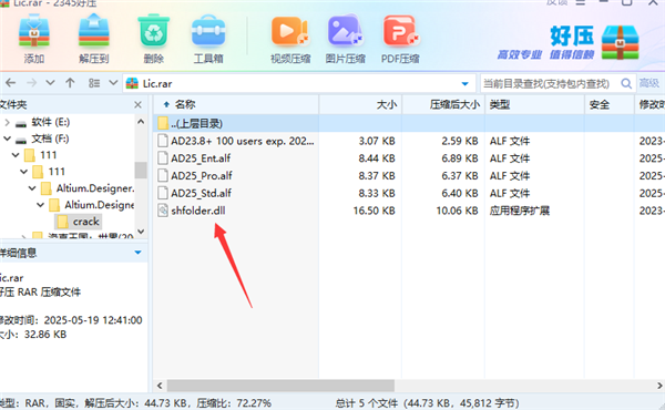12、打开安装包Crack文件夹,选择shfolder.dll文件复制到刚才打开的软件安装目录位置下。