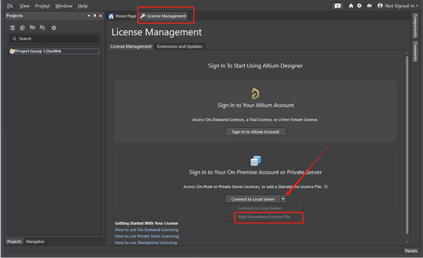 13、选择License Management,下拉选择【Add Standalone License File】,如下图所示。