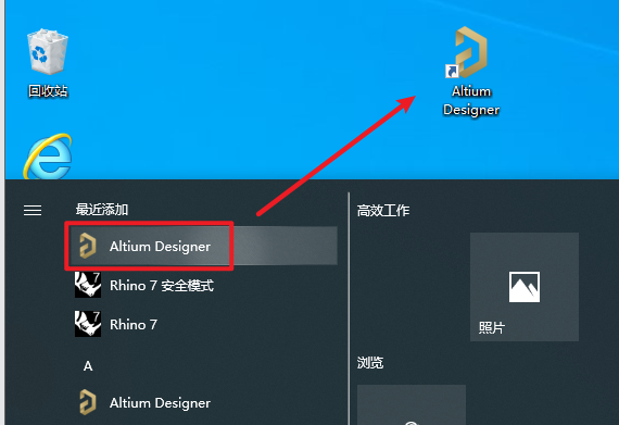 11、在开始界面找到【Altium Designer】软件图标,拖到电脑桌面。