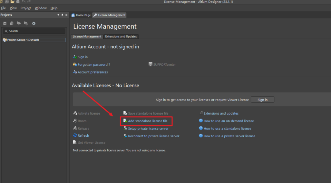 15、点击【Add standalone license file】。