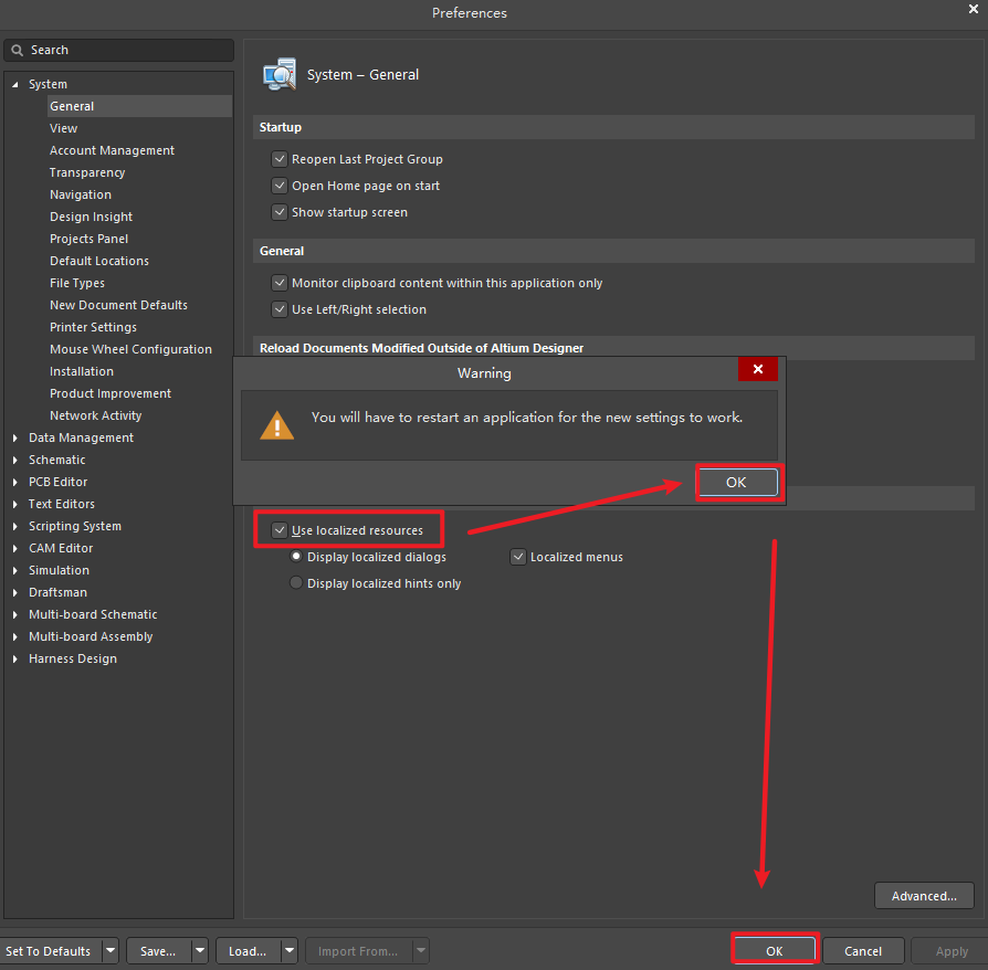 18、勾选Use localized resources,点击【OK】,再点击【OK】。