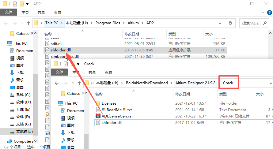 11、将【Crack】文件夹下的【shfolder.dll】复制粘贴至软件安装位置中。