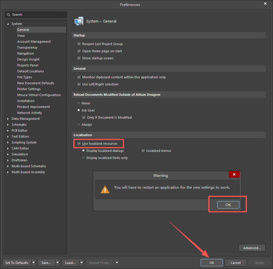 15、勾选【Use localized resources】,点击【OK】,再点击【OK】。
