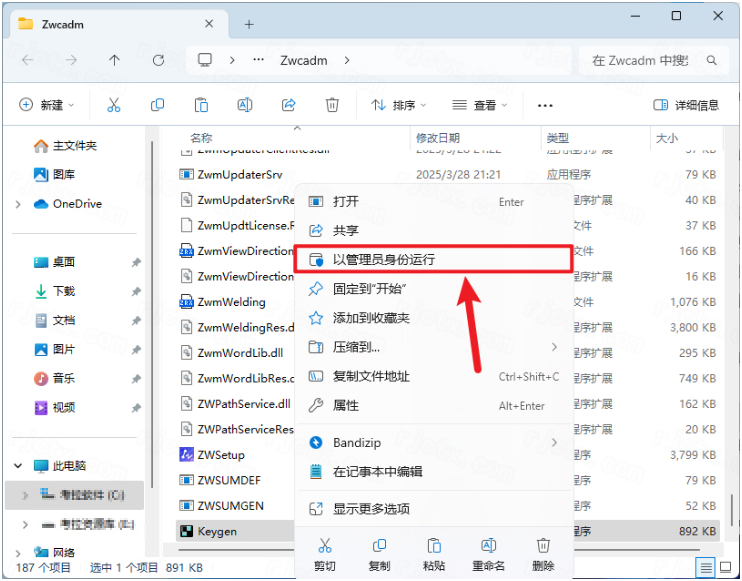 11.鼠标右击粘贴后的【Keygen】选择【以管理员身份运行】