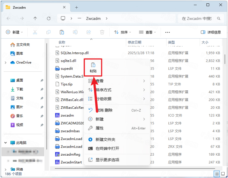 10.鼠标右击空白处选择【粘贴】