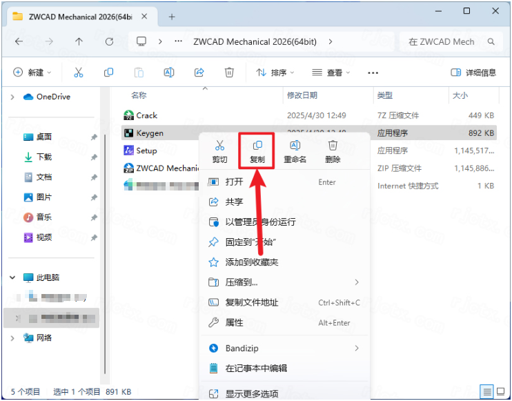 8.鼠标右击解压出来的【Keygen】选择【复制】
