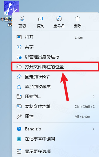 9.鼠标右击桌面【中望CAD机械版2026】选择【打开文件所在的位置】