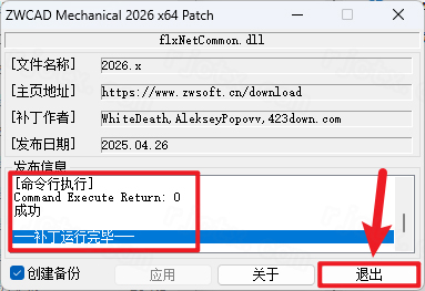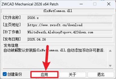 12.点击【应用】(如果弹出未找到此文件,请在Program Files>ZWSOFT >ZWCAD Mechanical 2026 Chs目录中,找到并选择flxNetCommon文件,点击【打开】)