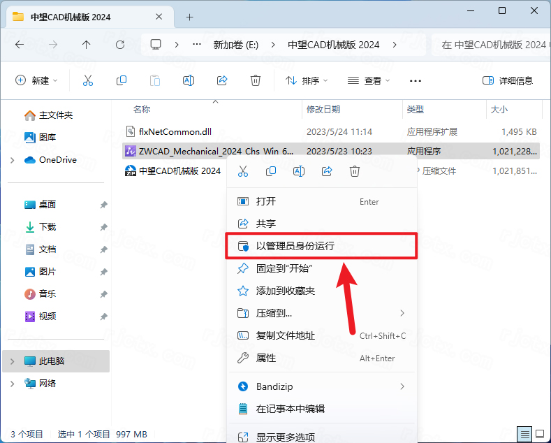 2.找到【ZWCAD_Mechanical_2024】应用程序,右键选择【以管理员身份运行】它