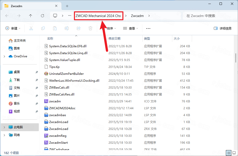 10.点击路径上的【ZWCAD Mechanical 2024 Chs】