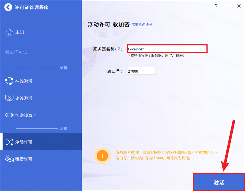 17.服务器名称/IP输入:Localhost,再点击【激活】