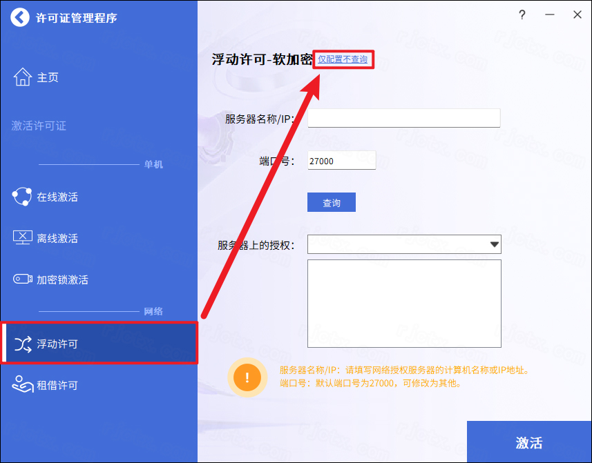 16.点击【浮动许可】,再点击【仅配置不查询】