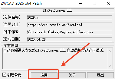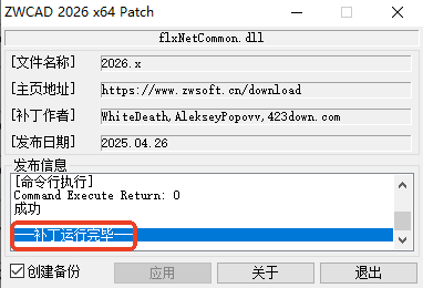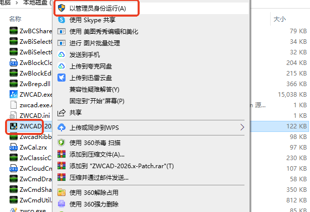 5、然后将解压得到的“ZWCAD-2026.x-Patch.exe”复制到软件安装目录里面,右键管理员身份运行。