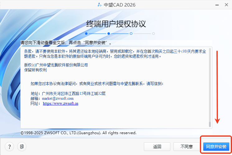 2、向下滑动,然后选择同意。