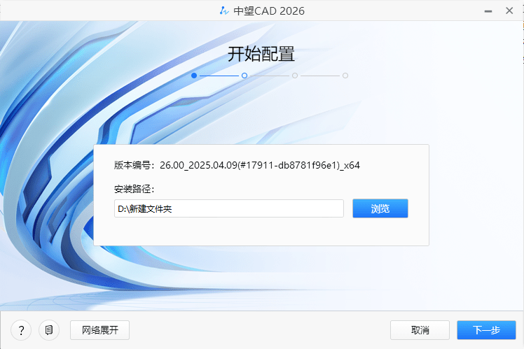 1、下载解压后,双击运行中望CAD2026建筑版安装包选择安装路径。
