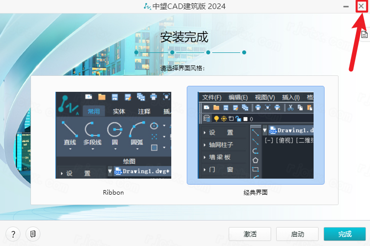 6.界面提示“安装完成”,点击右上角【X】关闭