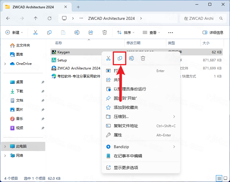 8.鼠标右击解压出来的【Keygen】选择【复制】