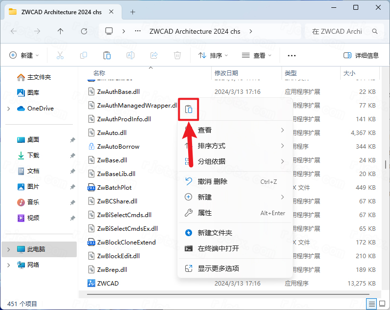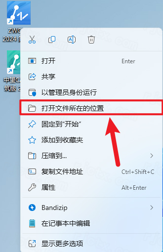 9.鼠标右击桌面【ZWCAD2024简体…】选择【打开文件所在的位置】