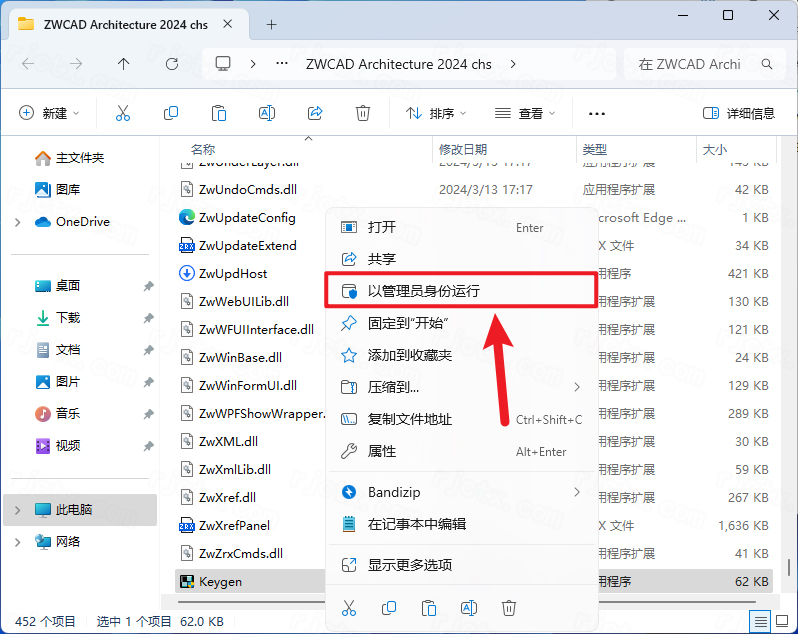 11.鼠标右击粘贴后的【Keygen】选择【以管理员身份运行】