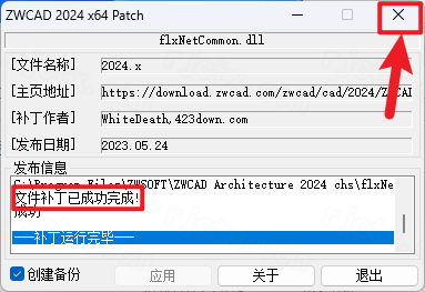 13.界面提示“成功完成”,点击右上角【X】关闭