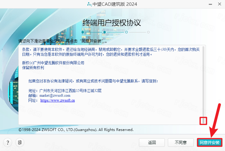 4.拖动【下拉条】到底部阅读完毕,点击【同意并安装】