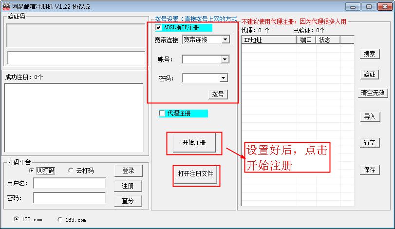 网易邮箱注册机协议版(网易邮箱注册软件)是一款绿色免费的用来批量注册网易邮箱的软件。软件功能强大,全自动拨号或是代理换IP,远程验证码识别,支持网易163和126邮箱批量注册,可以真正实现全自动挂机批量注册网易邮箱!