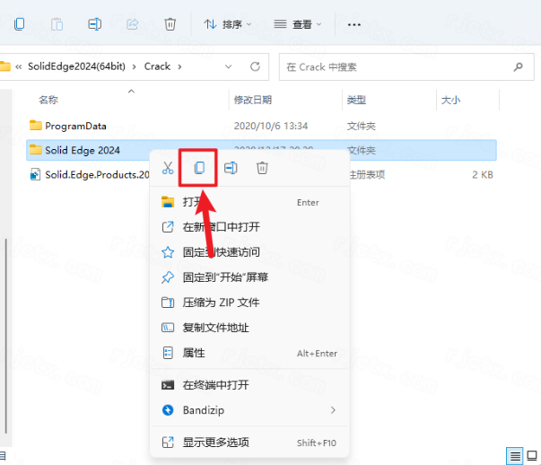 8.鼠标右击【Solid Edge 2024】文件夹选择【复制】