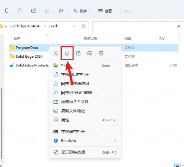 16.回到【Crack】文件夹,鼠标右击【ProgramDate】文件夹选择【复制】