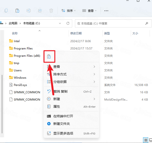 17.打开C盘路径:C:\Program Files,鼠标右击空白处选择【粘贴】