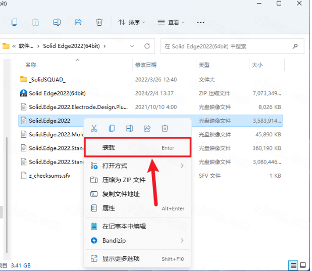 2.鼠标右击【Solid Edge 2022】镜像文件,点击【装载】