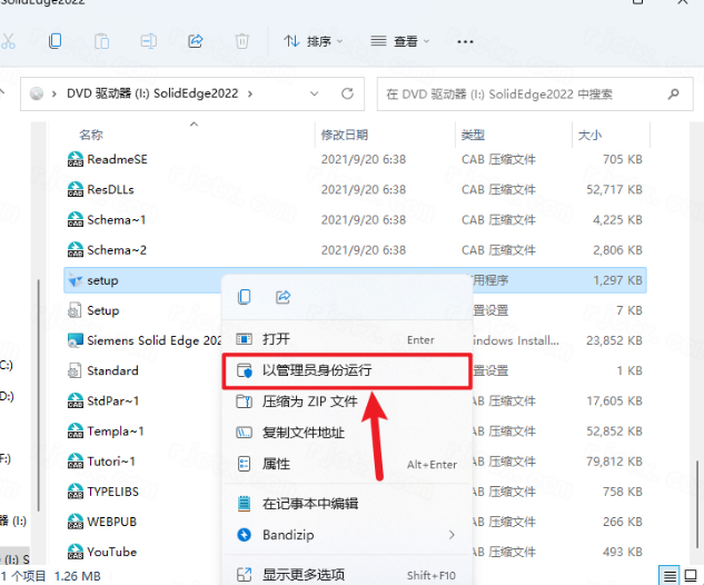 3.鼠标右击【setup】,选择【以管理员身份运行】