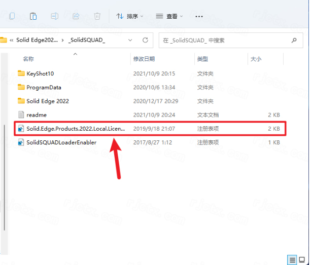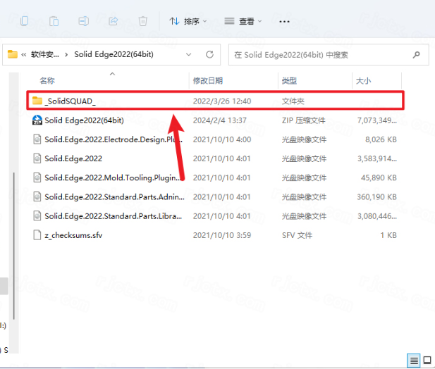 18.回到打开后的【-SolidSQUAD -】文件夹,双击打开【Solid.Edge.Products.2022.Local.Licensing-SSQ】