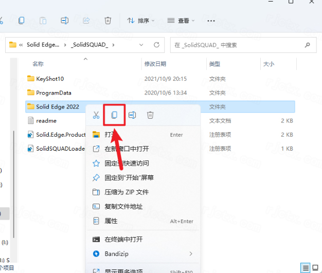 8.鼠标右击【Solid Edge 2022】选择【复制】