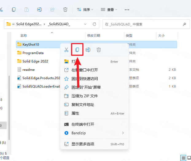 13.回到打开后的【-SolidSQUAD -】文件夹,鼠标右击【KeyShot 10】选择【复制】