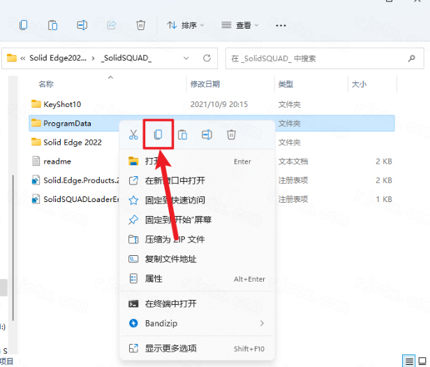 16.回到打开后的【-SolidSQUAD -】文件夹,鼠标右击【ProgramDate】选择【复制】