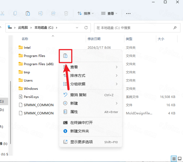 17.打开电脑C盘,在此页面空白处鼠标右击选择【粘贴】