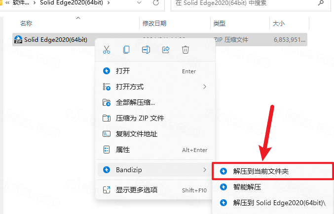 1.下载完成后,鼠标右击【Solid Edge 2020】压缩包,选择【解压到当前文件夹】