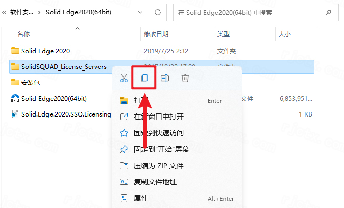 2.打开解压后的文件夹,鼠标右击【SolidSQUAD_License_Servers】选择【复制】
