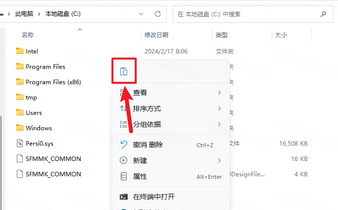 3.打开电脑【C盘】,在空白处鼠标右击选择【粘贴】