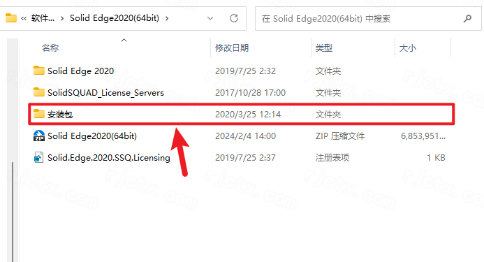 7.打开安装包解压后的【Solid Edge2020(64bit)】文件夹中的【安装包】文件夹
