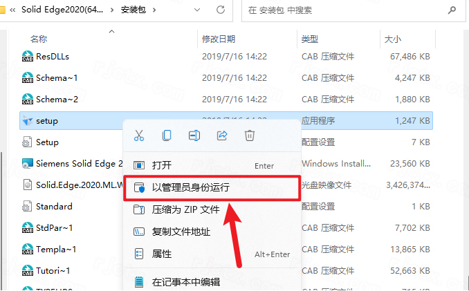 8.鼠标右击【setup】选择【以管理员身份运行】