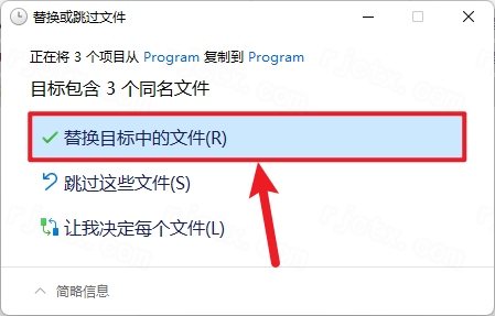 15.点击【替换目标中的文件】